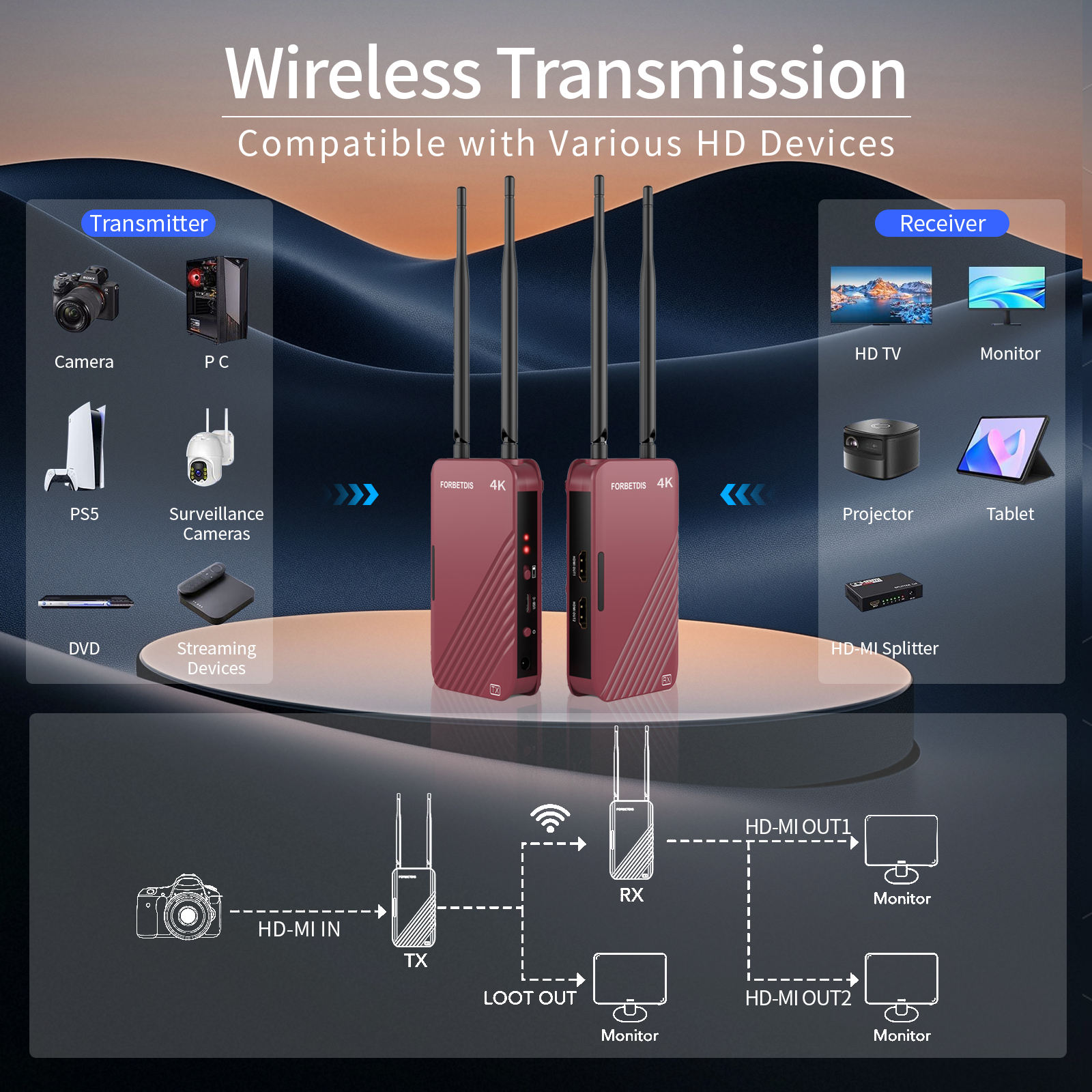 . 500M 1640FT HD-MI 4K Video Wireless Transmitter and Receiver